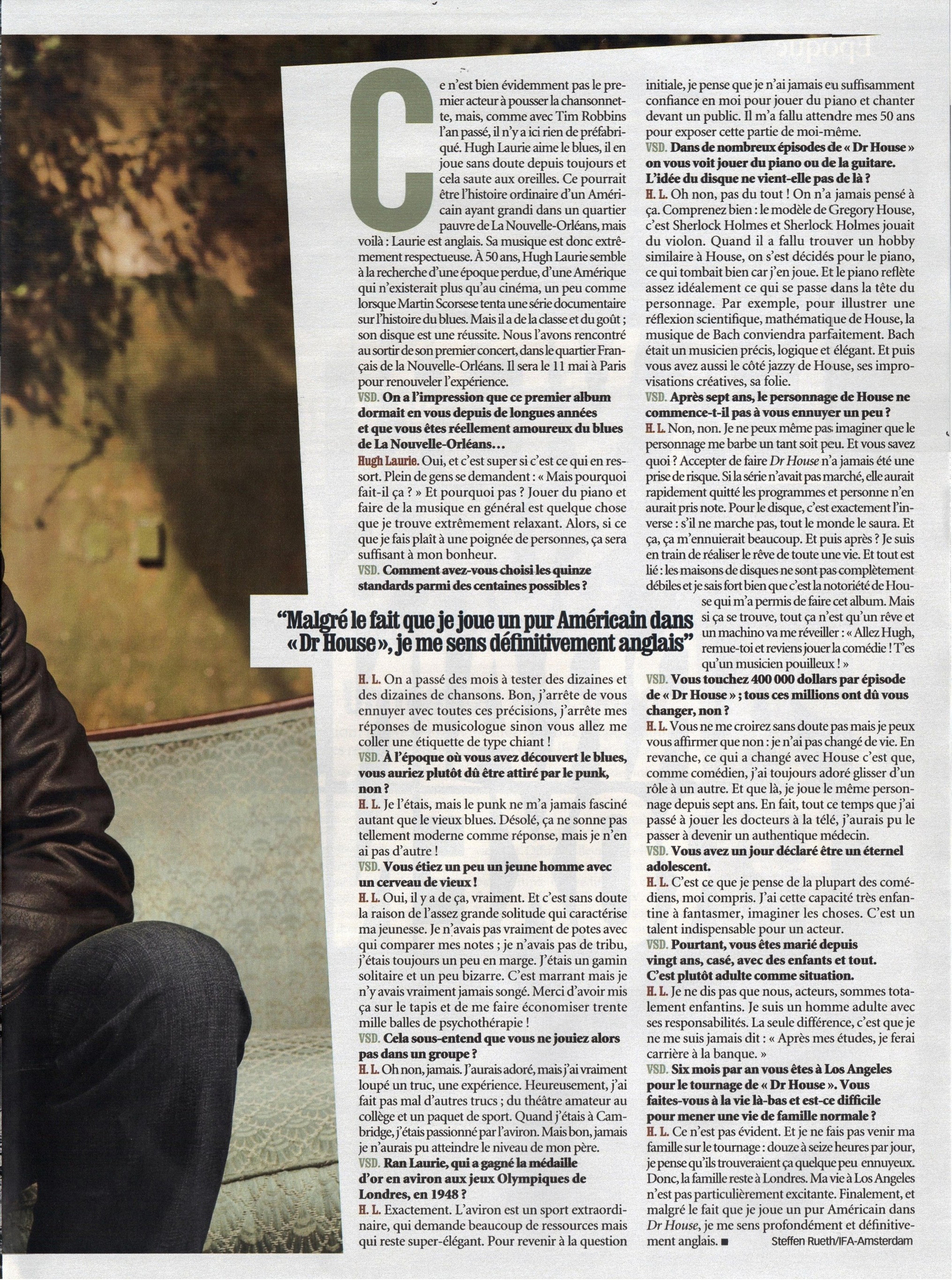 Hugh Laurie : « Je me lâche avec la musique »Hier ist eine Übersetznung für beide Artikel